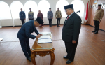 Jakarta, Badan Pengawasan Pemilihan Umum- Ketua Bawaslu Abhan melantik tiga pejabat pimpinan tinggi madya atau eselon satu (1) b di jajaran Sekretariat Bawaslu, Kamis (17/6/2021) di Gedung Bawaslu.