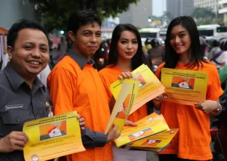 Jakarta, Badan Pengawas Pemilu– Gerakan Sejuta Relawan Pengawas Pemilu (GSRPP) melakukan sosialisasi agar menggunakan hak pilih untuk memilih presiden dan wakil presiden menjelang masa tenang Pilpres 2014 di depan gedung Bawaslu RI, Jalan MH. Thamrin 14 Jakarta Pusat (7/7).