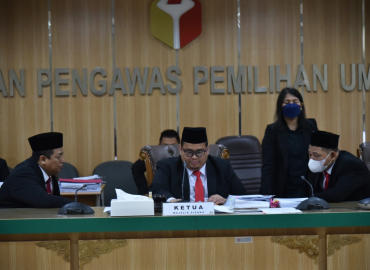 Jakarta, Badan Pengawas Pemilihan Umum- Bawaslu kembali menggelar sidang Dugaan Pelanggaran Administrasi Pemilu 2024 dengan agenda Pembacaan Laporan Pelapor dan Jawaban Terlapor. Sidang tersebut dipimpin oleh Ketua Majelis Sidang Puadi dan didampingi Herwyn J.H.