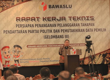 Jakarta, Badan Pengawas Pemilihan Umum- Menjelang dua hari pendaftaran partai politik (parpol) Pemilu 2024, Bawaslu menggelar rapat dalam jaringan Pengawasan Tahapan Pendaftaran, Verifikasi, dan Penetapan Partai Politik Peserta Pemilihan Umum Tahun 2024.