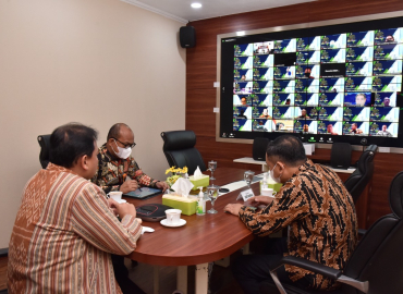 Jakarta, Badan Pengawas Pemilihan Umum- Ketua Bawaslu Abhan didampingi Inspektorat Utama (Irtama) Bawaslu Ichsan Fuady dan Deputi Bidang Dukungan Administrasi Ferdinand Eskol Tiar Sirait menghadiri secara virtual Entry Meeting Pemeriksaan atas Laporan Keuangan Kementerian atau Lembaga (LKKL) Tahun 2021 di Lingkungan AKN 1 bersama BPK RI, Jumat (4/2/2021) di Gedung Bawaslu RI.