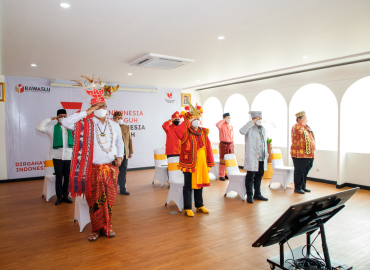 Kenakan Baju Adat Daerah, Ketua dan Anggota Bawaslu Ikuti Upacara Kemerdekaan HUT Ke-76 RI secara Virtual