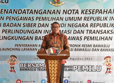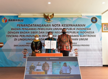 Jakarta, Badan Pengawas Pemilihan Umum – Hari ini Bawaslu menjalin kerja sama penandatanganan nota kesepahaman (Memorandum of Understanding/MoU) dengan Badan Siber Sandi Negara (BSSN) tentang Perlindungan Informasi dan Transaksi Elektronik di Lingkungan Bawaslu. Kegiatan berlangsung daring (dalam jaringan) dari kantor masing-masing. Kedua belah pihak tidak bertemu secara fisik.