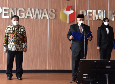 Jakarta, Badan Pengawas Pemilihan Umum - Sekretaris Jenderal Bawaslu Gunawan Suswantoro melantik sekaligus mengambil sumpah serta janji 17 pejabat administrator dan pejabat pengawas di lingkungan Sekretariat Jenderal Bawaslu, Sekretariat Bawaslu Provinsi, dan Sekretariat Bawaslu Kabupaten/Kota.