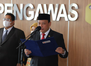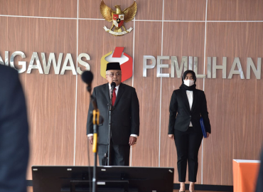 Jakarta, Badan Pengawasan Pemilihan Umum- Ketua Bawaslu Abhan melantik tiga pejabat pimpinan tinggi madya atau eselon satu (1) b di jajaran Sekretariat Bawaslu, Kamis (17/6/2021) di Gedung Bawaslu.