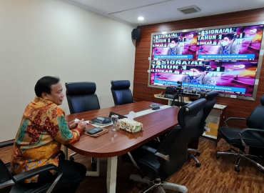 Jakarta, Badan Pengawas Pemilihan Umum – Ketua Bawaslu Abhan menghadiri Rapat Koordinasi Nasional (Rakornas) Pengawasan Intern Pemerintah Tahun 2021 secara virtual dari Ruang Video Conference Bawaslu, Kamis, (27/5/2021). Acara tersebut dibuka oleh Presiden Joko Widodo (Jokowi).