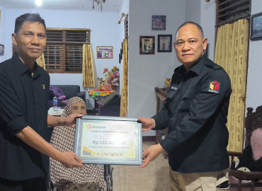 Gorontalo Utara, Badan Pengawas Pemilihan Umum - Anggota Bawaslu Totok Hariyono menyerahkan santunan dana kerahiman kepada keluarga salah satu staf Bawaslu Provinsi Gorontalo atas nama Sri Wilin Lihawa yang wafat November 2024 lalu. Penyerahan dana kerahiman dilakukan di rumah duka dan diterima oleh suami almarhumah di daerah Gorontalo Utara, Gorontalo, Sabtu (19/04/2025).