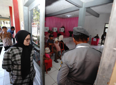 Tasikmalaya, Badan Pengawas Pemilihan Umum - Anggota Bawaslu Lolly Suhenty apresiasi kesigapan Anggota Perlindungan Masyarakat (Linmas) dalam melakukan keamanan dan pelayanan bagi calon Pemilih di Pemungutan Suara Ulang (PSU) TPS 7 Desa Cipakat Kabupaten Tasikmalaya.