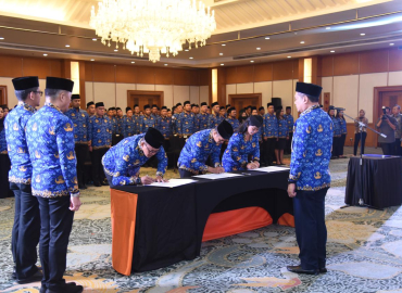 Jakarta, Badan Pengawas Pemilihan Umum- Sekretaris Jenderal Ichsan Fuady melantik sekaligus mengambil sumpah dan janji pada 146 pejabat administrator dan 14 PPPK. Ichsan meminta para terlantik menjaga kredibilitasnya sebagai pengawas pemilu.