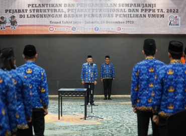 Jakarta, Badan Pengawas Pemilihan Umum - Sekretaris Jenderal Bawaslu Ichsan Fuady meminta 667 tenaga Pegawai Pemerintah dengan Perjanjian Kerja (PPPK), pejabat fungsional, dan pejabat struktural Bawaslu tahun anggaran 2022 yang baru dilantik untuk siap segera melakukan kerja-kerja pengawasan. Dia mengingatkan, saat ini Bawaslu sedang berfokus melakukan pengawasan logistik dan kampanye pemilu.