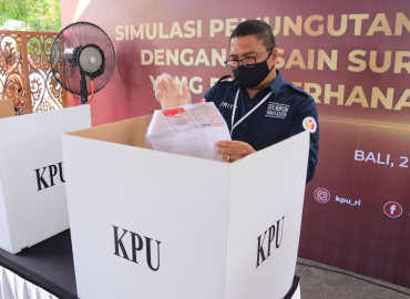 Denpasar, Badan Pengawas Pemilihan Umum- Anggota Bawaslu Fritz Edward Siregar mengikuti simulasi penyederhanaan surat suara yang diselenggarakan oleh KPU, Kamis (2/12/2021) di Kantor KPU Provinsi Bali.