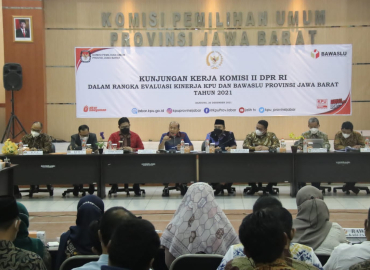 Bandung, Badan Pengawas Pemilihan Umum- Dua Anggota Bawaslu yakni Mochammad Afifuddin dan Rahmat Bagja menghadiri kunjungan kerja Komisi II DPR RI ke kantor KPU Jawa Barat (Jabar), Senin, (20/12/2021). Forum ini digelar untuk mendengarkan catatan evaluasi, tantangan, dan persiapan KPU dan Bawaslu di Jabar dalam menghadapi Pemilu dan Pemilihan Serentak Tahun 2024 di Jabar.