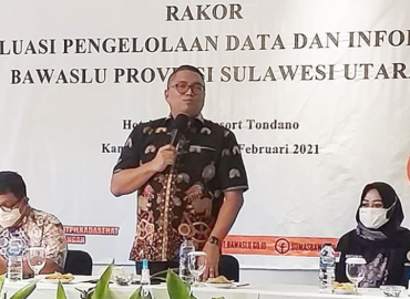 Manado, Badan Pengawas Pemilihan Umum – Anggota Bawaslu Fritz Edward Siregar menghadiri Rapat Koordinasi (rakor) Evaluasi Pengelolaan Data dan Informasi Bawaslu Provinsi Sulawesi Utara, di Manado, Sabtu (6/2/2021).