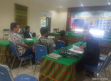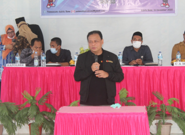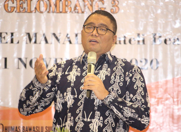 Ketua Bawaslu Abhan memberikan pengarahan saat menghadiri pelantikan dan pengambilan sumpah Pengawas TPS se-Kecamatan Kabila Bone Kabupaten Bone Bolango, Senin 16 November 2020. Abhan mengatakan ujung tombak pengawasan ada pada tahapan pemungutan dan perhitungan suara yang disaksikan pertama kali oleh pengawas TPS.