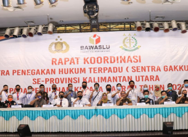 Tarakan, Badan Pengawas Pemilihan Umum - Dalam rangka menyamakan persepsi dan pandangan, Bawaslu Provinsi Kalimantan Utara (Kaltara) menyelenggarakan Rapat Koordinasi (Rakor) Sentra Penegakkan Hukum Terpadu (Gakkumdu) se-Provinsi Kaltara. Rakor ini bertujuan menyeragamkan regulasi terkait tindak pelanggaran pidana pada Pilkada Serentak 2020 Desember mendatang.