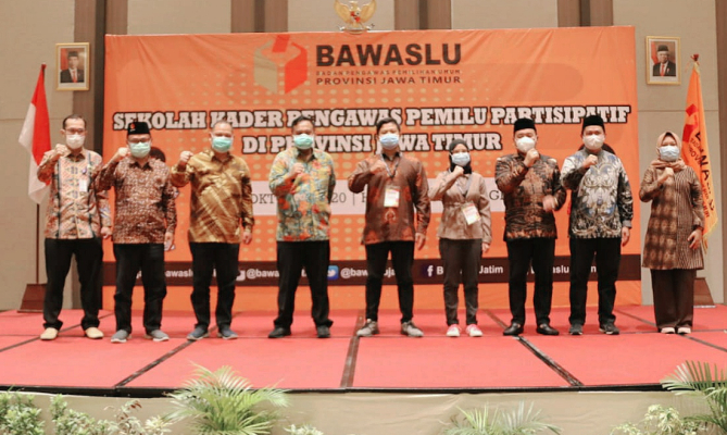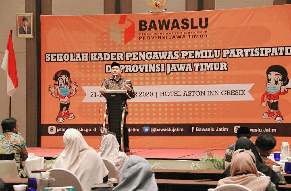 Anggota Bawaslu Mochamad Afifuddin memberi pengarahan kepada peserta Sekolah Kader Pengawasan Partisipatif (SKPP) di Gresik, Jawa Timur, Rabu, (21/10/2020).