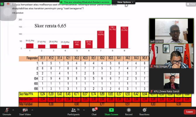 “Ternyata hanya 59,7% dari responden yang tahu. Survei itu belum berbicara mengenai apa itu tugas KPU atau tugas Bawaslu? Bagaimana dengan pilkadanya? Tentu menjadi perhatian bagi penyelenggara pemilu dan kita bersama. Survei ini menjadi PR (pekerjaan rumah) kita semua agar mengajak terlibat dalam proses Pemilu 2024 hingga menjadi pemilih,” ajak dia.
