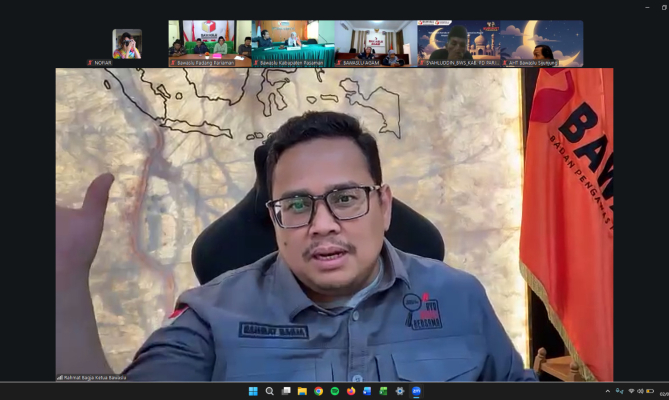 Tangkapan layar Ketua Bawaslu Rahmat Bagja saat memaparkan materi dalam “Ngabuburit Pengawasan” yang diselenggarakan Bawaslu Kabupaten Pasaman dan Bawaslu Kabupaten Padang Pariaman bertema “Kehumasan Bawaslu sebagai Jembatan Mengatasi Isu Negatif dengan Komunikasi Efektif” secara daring melalui Zoom Meeting, Senin (2/3/2026) di Jakarta.