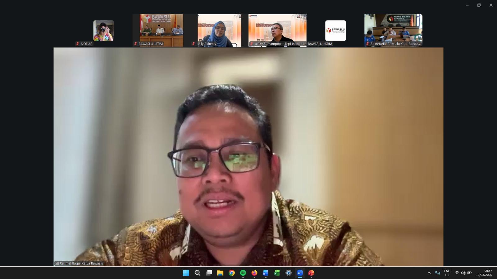 Ketua Bawaslu Rahmat Bagja mengatakan, buku Kebijakan Strategis dan Program Divisi Pencegahan dan Partisipasi Masyarakat Bawaslu Provinsi dan Bawaslu Kabupaten/Kota Se-Jawa Timur yang digelar secara daring, Kamis (12/3/2024).