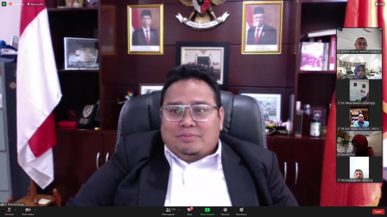 Jakarta, Badan Pengawas Pemilihan Umum- Anggota Bawaslu Rahmat Bagja mengungkapkan tantangan penyelenggaraan Pemilu Serentak tahun 2024. Tantangan tersebut disampaikan dalam webinar bertajuk Tantangan Mewujudkan Keadilan Pemilu pada Penyelenggaraa Pemilu Serentak 2024 yang diselenggarakan Bawaslu Kabupaten Bantul, Provinsi DI. Yogyakrta, Jumat (13/8/2021)