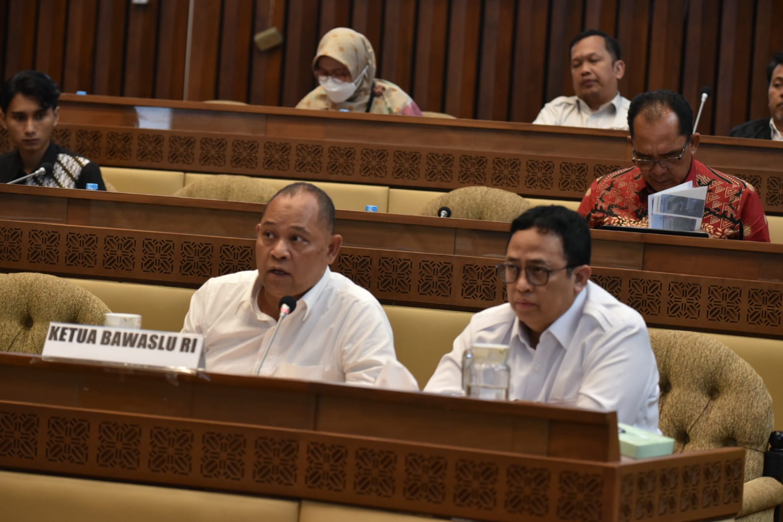Jakarta, Badan Pengawas Pemilihan Umum- Bawaslu menghadiri rapat dengar pendapat (RDP) bersama Komisi II DPR dan KPU bersama DKPP, Rabu (15/3/2023). RDP tersebut menyoalkan wacana penundaan pemilu akibat putusan perdata pengadilan negeri (PN) Jakarta Pusat yang mengabulkan gugatan Partai Partai Rakyat Adil Makmur (Prima).
