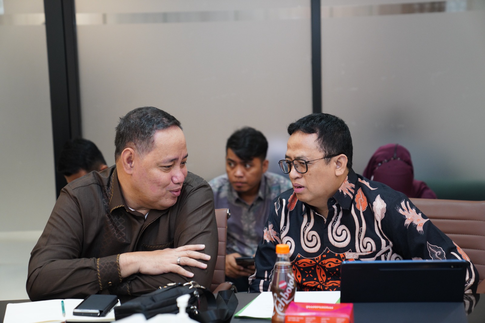 Anggota Bawaslu Herwyn JH Malonda bersama Anggota Bawaslu Puadi saat menerima perwakilan KY di Gedung Bawaslu Senin (16/3/2023).