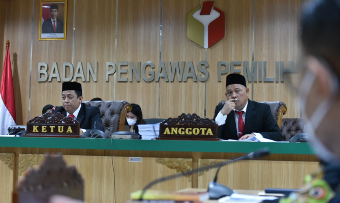 Sidang kali ini dipimpin oleh Majelis Sidang Bawaslu selalu Ketua Sidang Puadi dan Anggota Totok Hariyono di Ruang Sidang Bawaslu, Jakarta, Selasa (14/3/2023).