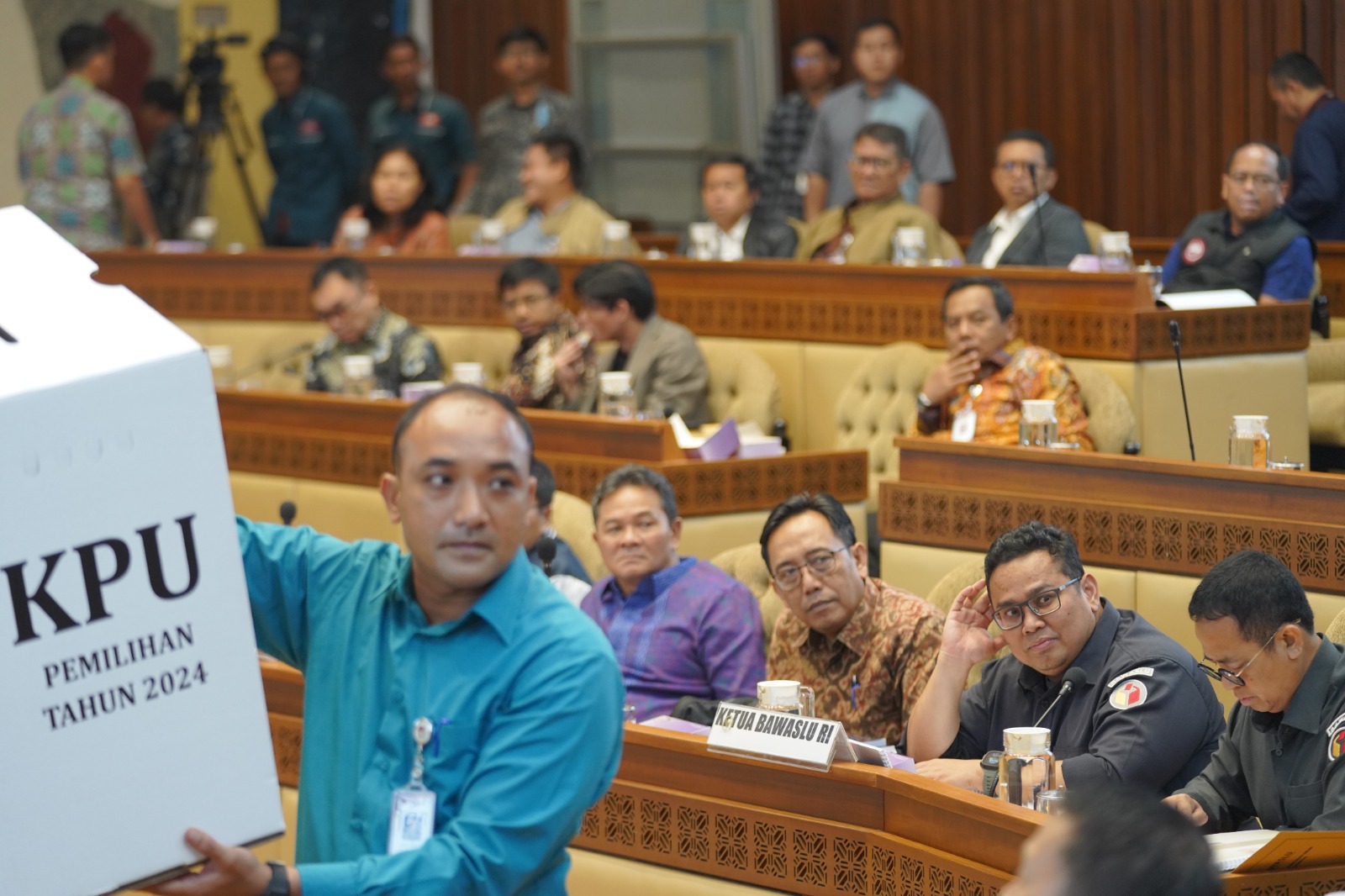Lalu, tiga rancangan PKPU yang disetujui, pertama rancangan PKPU tentang Perlengkapan Pemungutan Suara, Dukungan Perlengkapan Lainnya dan Perlengkapan Pemungutan Suara Lainnya, kedua Rancangan PKPU tentang Kampanye Pemilihan, dan ketiga PKPU tentang Dana Kampanye Peserta Pemilihan.