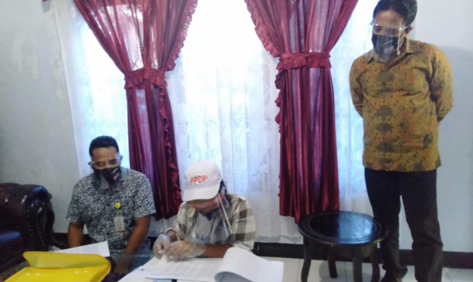 Anggota Bawaslu Provinsi Maluku Utara, Masita Nawawi Gani saat mengawasi proses pencocokan dan penelitian (coklit) data pemilih untuk Pilkada 2020 di Maluku Utara, Selasa (21/07/2020).