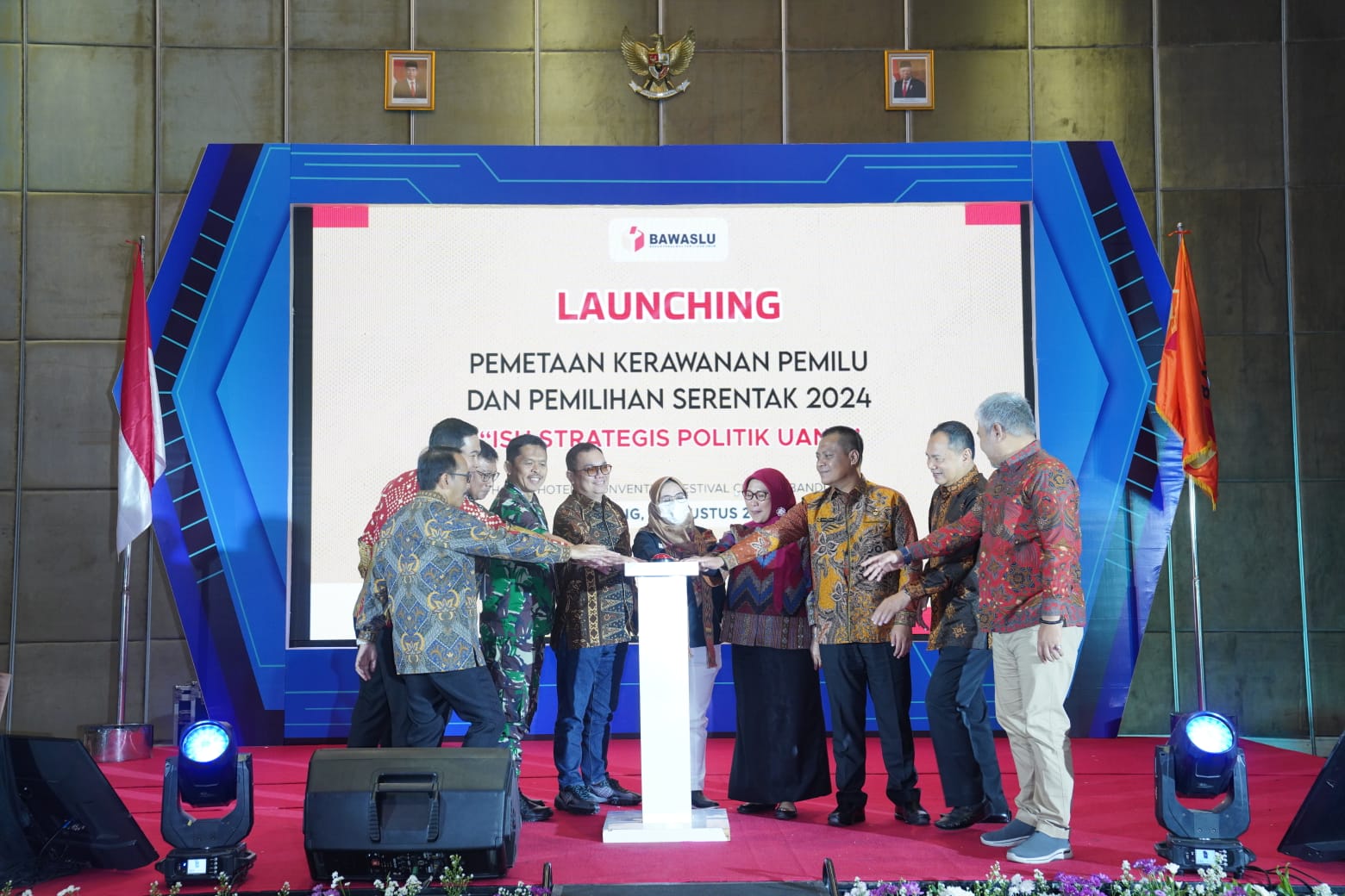 Bawaslu meluncurkan Indeks Kerawanan Pemilu (IKP) tematik mengenai isu politik uang di Bandung, Jawa Barat, Minggu (13/8/2023). Foto: Pemberitaan dan Publikasi Bawaslu RI