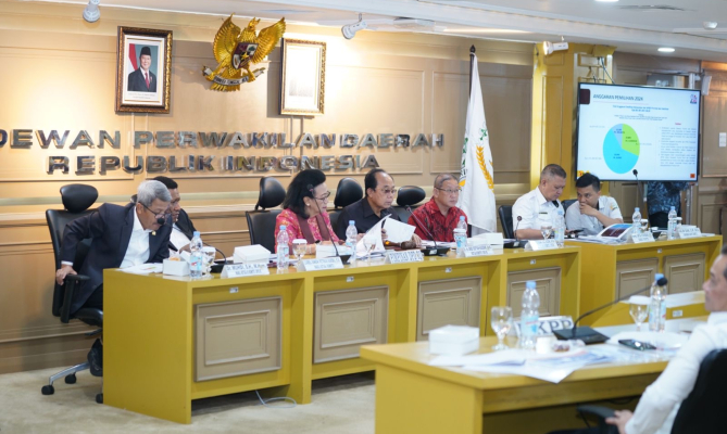 Jakarta, Badan Pengawas Pemilihan Umum - Bawaslu menyampaikan hasil pengawasan Pemilihan Serentak 2024 dalam Rapat Perdana Komite I DPD RI bersama Bawaslu, KPU dan DKPP. Rapat tersebut dihadiri Ketua dan Anggota Bawaslu, KPU, dan Anggota DKPP serta Pimpinan Komite I DPD RI.