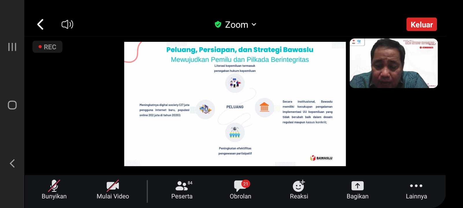 Anggota Bawaslu Herwyn JH Malonda saat menjadi keynote speaker dalam diskusi daring yang diadakan Komite Independen Sadar Pemilu (KISP), Sabtu (24/6/2023).