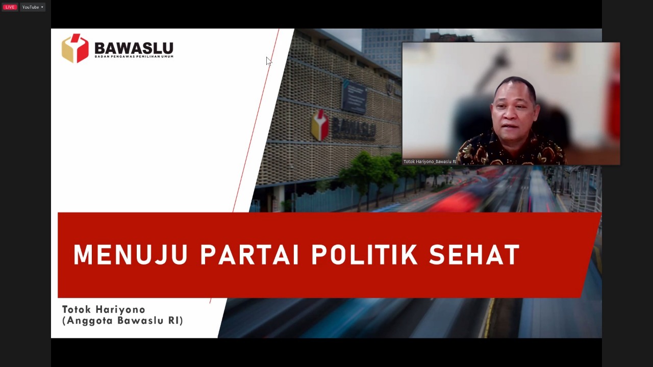 Anggota Bawaslu Totok Hariyono menjadi narasumber dalam webinar yang digelar Komite Pemantau Legislatif (Kopel) Jabodetabek bertajuk 'Parpol Sehat untuk Pemilu 2024, Kamis (4/8/2022).