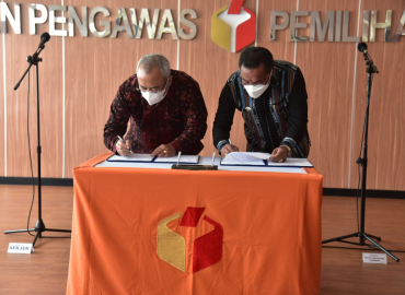 Jakarta, Badan Pengawas Pemilihan Umum - Pemerintah Kabupaten (Pemkab) Kepulauan Tanimbar memberikan hibah tanah kepada Bawaslu Kabupaten Kepulauan Tanimbar. Penyerahan hibah ini disepakati melalui penandatanganan oleh Sekretaris Jenderal Bawaslu Gunawan Suswantoro dan Bupati Kepulauan Tanimbar Petrus Fatlolon di Kantor Bawaslu, Jalan MH.Thamrin Jakarta Pusat, Senin (12/4/2021).