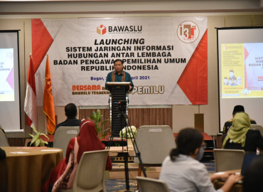 Bogor, Badan Pengawas Pemilihan Umum - Ketua Bawaslu Abhan mengesahkan peluncuran aplikasi Sistem Informasi Hubungan Antarlembaga Bawaslu (Si Jari Hubal). Aplikasi ini diharapkan bisa menjadi bagian pengadminitrasian modern sekaligus pintu masuk koordinasi dan sinkronisasi dengan pihak eksternal yang tersaji kepada publik.