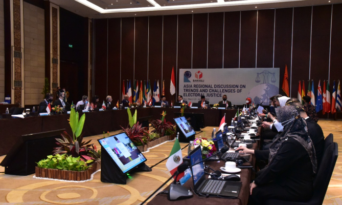 Bali, Badan Pengawas Pemilihan Umum - Bawaslu selaku Presiden Global Global Network On Electoral Justice (GNEJ) 2022-2023 mengajak seluruh anggota GNEJ berjuang bersama menegakkan keadilan pemilu. Hal tersebut dikatakan ketua Bawaslu Abhan saat membuka Program Of The Asia Regional Event di Nusa Dua, Bali, Kamis (31/3/2022) yang dilaksankan secara hybrid.