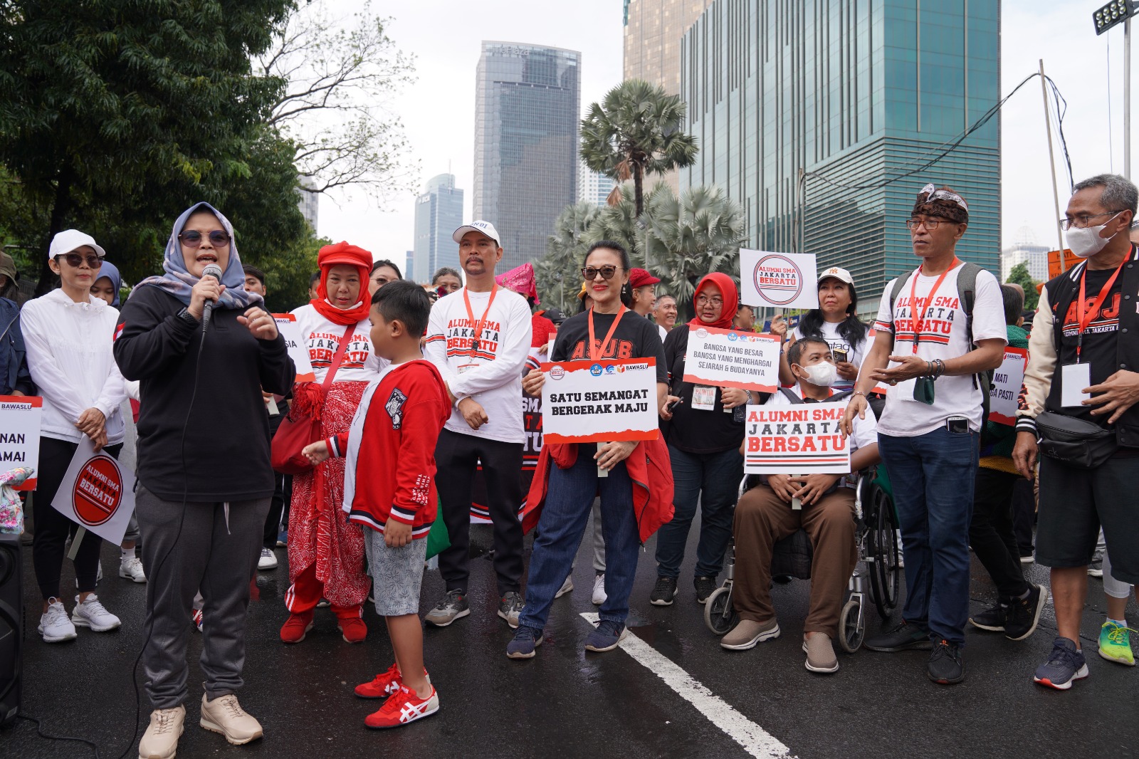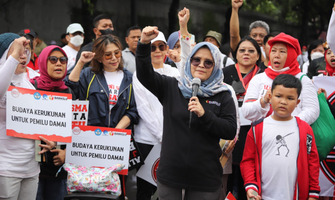 Jakarta, Badan Pengawas Pemilihan Umum - Anggota Bawaslu Lolly Suhenty menekankan masyarakat untuk aktif dalam menyukseskan pemilu dengan turut mengawasi setiap tahapan. Bawaslu membuka kolaborasi dengan semua pihak demi menciptakan pemilu damai. Demikian yang disampaikan dalam kegiatan jalan santai dan panggung budaya bertema Budaya Kerukunan - Jati Diri Bangsa yang diadakan Alumni SMA Jakarta Bersatu (ASJB) bersamaa dengan gelaran hari bebas kendaraan bermotor (car free day) di Jakarta, Minggu (29/1/2023).
