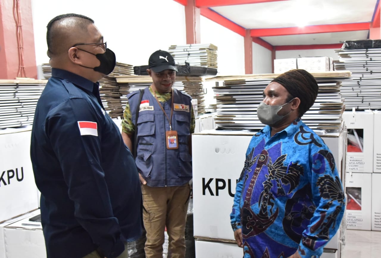 Wamena, Badan Pengawas Pemilihan Umum - Anggota Bawaslu Fritz Edward Siregar melakukan pengecekan logistik untuk Pemungutan Suara Ulang (PSU) tahap kedua Pemilihan Bupati (Pilbup) Kabupaten Yalimo, Provinsi Papua, Minggu, (23/1/2022). Dia berharap distribusi logistik PSU berjalan lancar hingga menyebar ke 327 Tempat Pemungutan Suara (TPS) di 298 kampung yang ada.