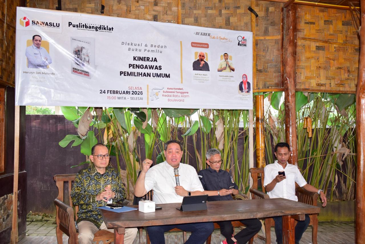 “Pengawasan sebenarnya harus kita pahami bahwa ujungnya adalah menghasilkan kualitas demokrasi yang lebih baik,” ujar Herwyn dalam diskusi dan bedah buku Kinerja Pengawas Pemilihan Umum Kegiatan yang digelar bersama Bawaslu Provinsi Sulawesi Tenggara ini berlangsung di Kedai Ratu Alam, Kota Kendari, Selasa (24/2/2026).
