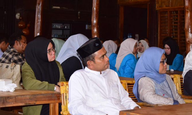 Anggota Bawaslu Herwyn (tengah yang menggunakan baju putih) dalam diskusi dan bedah buku Kinerja Pengawas Pemilihan Umum Kegiatan yang digelar bersama Bawaslu Provinsi Sulawesi Tenggara ini berlangsung di Kedai Ratu Alam, Kota Kendari, Selasa (24/2/2026).