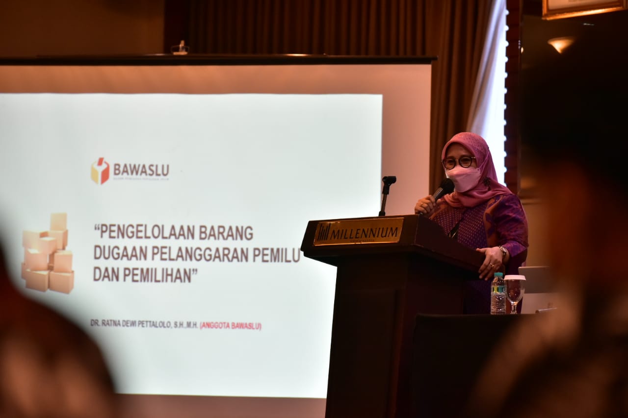Anggota Bawaslu Ratna Dewi Pettalolo saat memberikan arahan dalam Workshop Pengelolaan Barang Dugaan Pelanggaran Pemilihan Umum serta Pemilihan Gubernur, Bupati, dan Walikota ini dilaksanakan dalam empat gelombang, Senin 18 Oktober 2021/Foto: Pemberitaan dan Publikasi Bawaslu RI