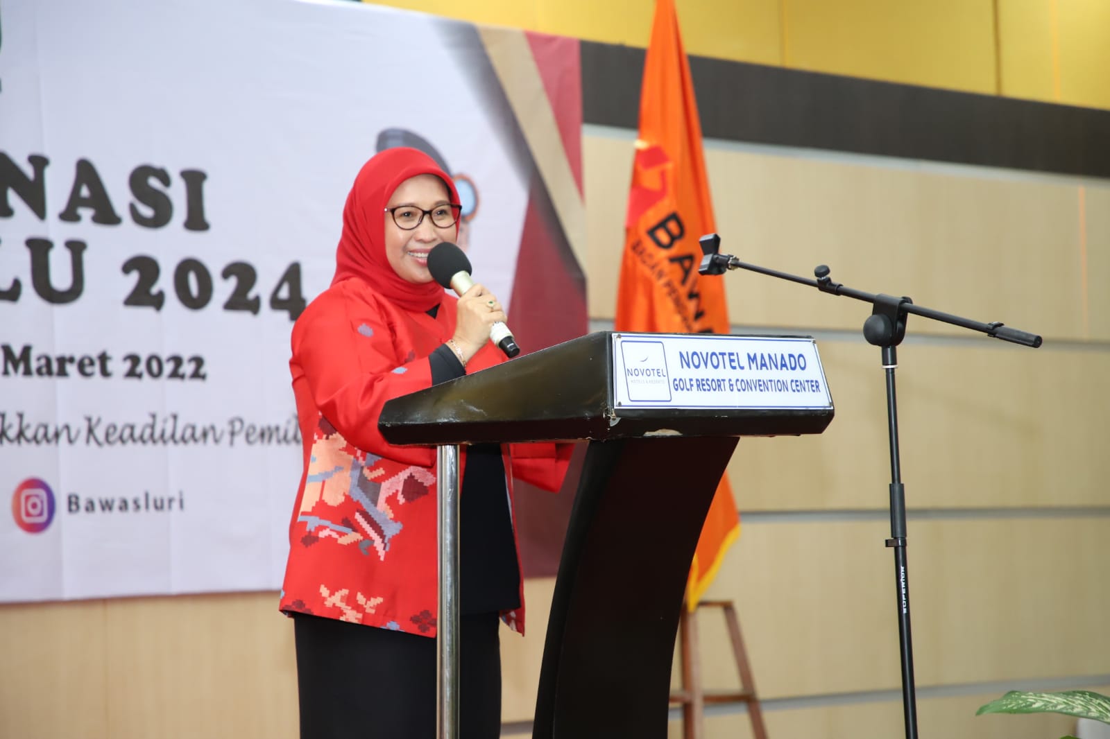 Anggota Bawaslu Ratna Dewi Pettalolo dalam Rapat Kordinasi Persiapan Pemilu 2024 di Manado, Sulawesi Utara, Jumat malam (4/3/2022).