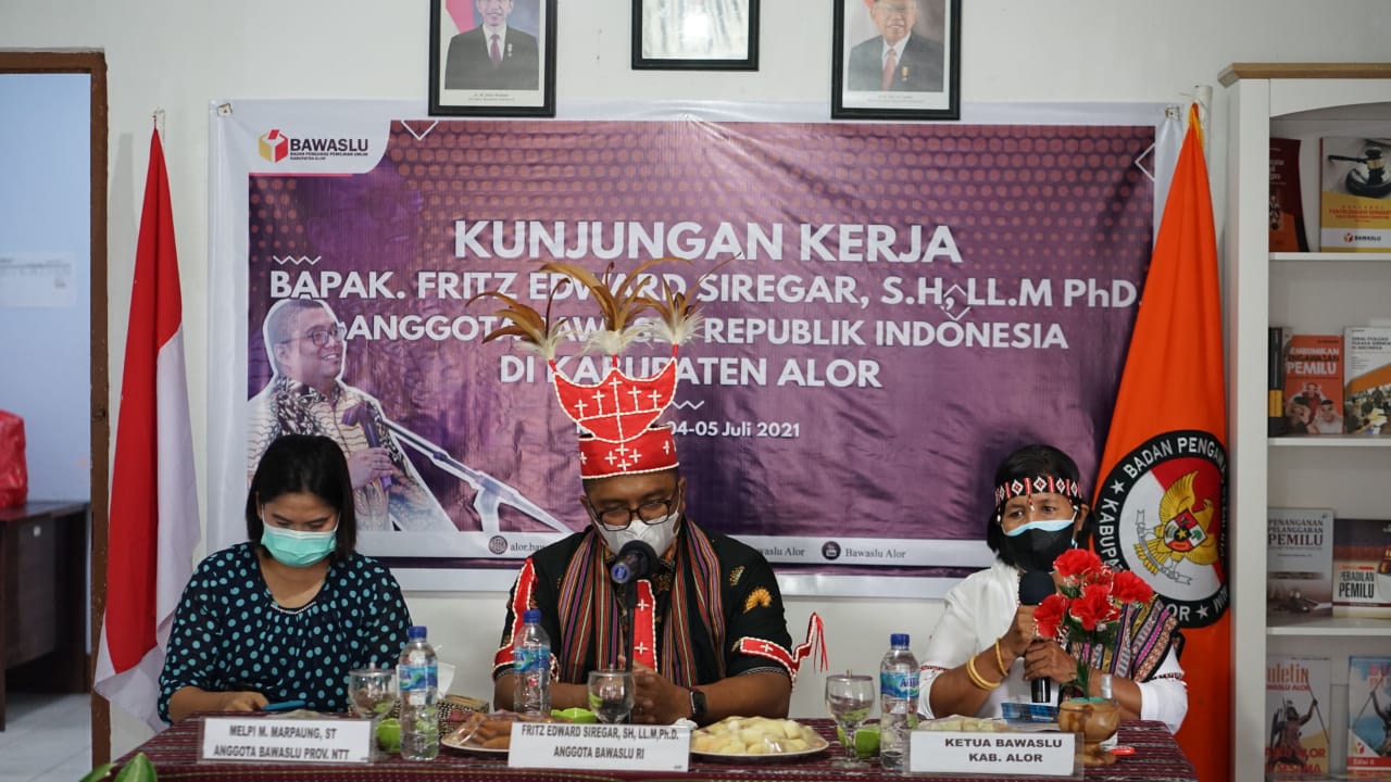 Alor, Bawaslu NTT - Dalam kunjungannya ke Kabupaten Alor, Nusa Tenggara Timur Anggota Bawaslu Fritz Edward Siregar menyampaikan agar jajaran pengawas untuk mempersiapkan tatanan pengawasan pelaksanaan pemilu dan pilkada tahun 2024 mendatang. Sebab menurutnya, tahapan Pemilu 2024 sudah mulai pada awal tahun depan.