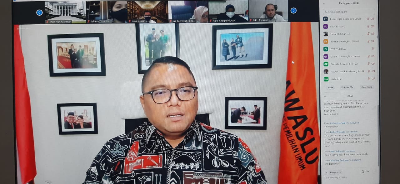 Koordinator Hukum, Humas, dan Datin Bawaslu Fritz Edward Siregar saat menjadi pembicara dalam webinar yang digelar oleh Mahkamah Konstitusi di Jakarta, Selasa (8/12/2020).