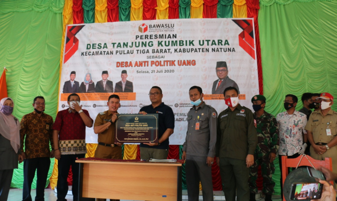 Natuna, Badan Pengawas Pemilihan Umum - Anggota Badan Pengawas Pemilihan Umum Republik Indonesia (Bawaslu RI), Fritz Edward Siregar meresmikan desa antipolitik uang pertama di Kabupaten Natuna, Kepulauan Riau (Kepri), Selasa (21/07/2020). Desa itu Tanjung Kumbik Utara. Fritz berharap semakin banyak terbentuk desa antipolitik uang dapat memacu semangat masyarakat untuk menolak politik uang.