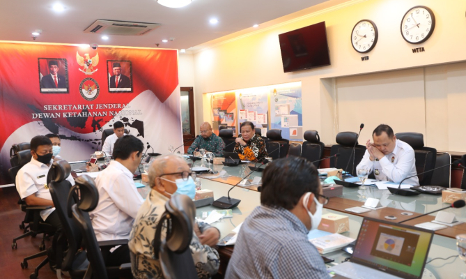 Ketua Bawaslu Abhan dalam Rapat Koordinasi Penguatan Demokrasi Berbasis Nilai-Nilai Pancasila Guna Menjaga Persatuan dan Kesatuan Dalam Pemilu dan Pilkada Serentak 2024 dalam rangka Keamanan Nasional, yang diadakan Dewan Ketahanan Nasional, melalui daring Rabu (9/2/2022).