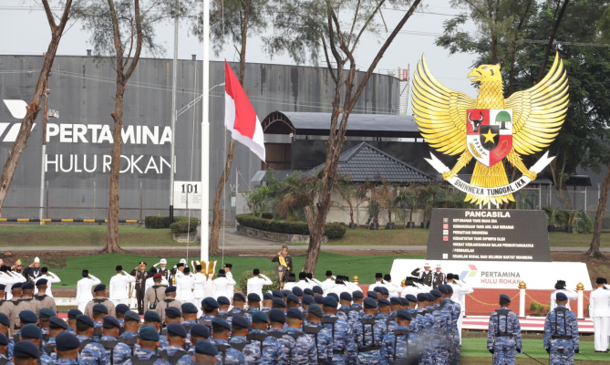 Upacara Hari Lahir Pancasila di di Lapangan Garuda Pertamina Hulu Rokan, Dumai, Riau, Sabtu (1/6/2024).