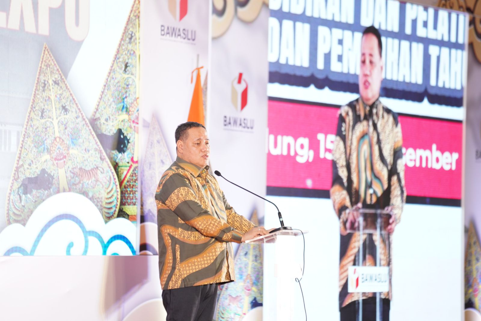 Anggota Bawaslu Herwyn JH Malonda dalam kegiatan Rakornas dan Expo Pusat Penelitian, Pengembangan, Pendidikan dan Pelatihan Pemilu dan Pemilihan Tahun 2024 di Bandung. Minggu (15/12/2024).