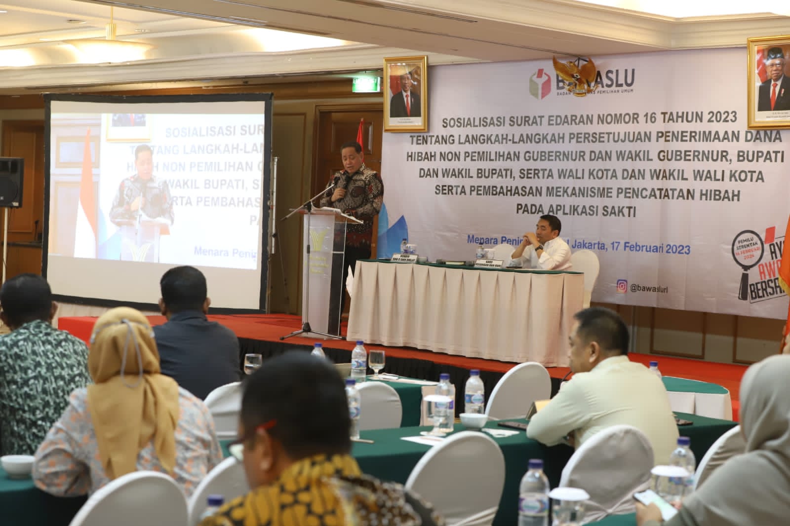"Penggunaan dana hibah tersebut harus menekankan kriteria kebutuhan dengan memperhatikan anggaran berbasis kinerja dan wajib dilaporkan. (Hal ini) serta mendapatkan persetujuan dari pelaksana anggaran (PA) Bawaslu. Jangan sampai dana hibah non-pilkada yang telah diterima tidak dilaporkan oleh unit kerja bersangkutan," serunya saat menutup acara Sosialisasi Surat Edaran Nomor 16 Tahun 2023 tentang Langkah-Langkah Persetujuan Penerimaan Danah Hibah Non Pemilihan Gubernur, Bupati, Wali Kota Serta Pembahasan Mekanisme Pencatatan Hibah pada Aplikasi SAKTI di Jakarta, Jumat (17/2/2023) malam.