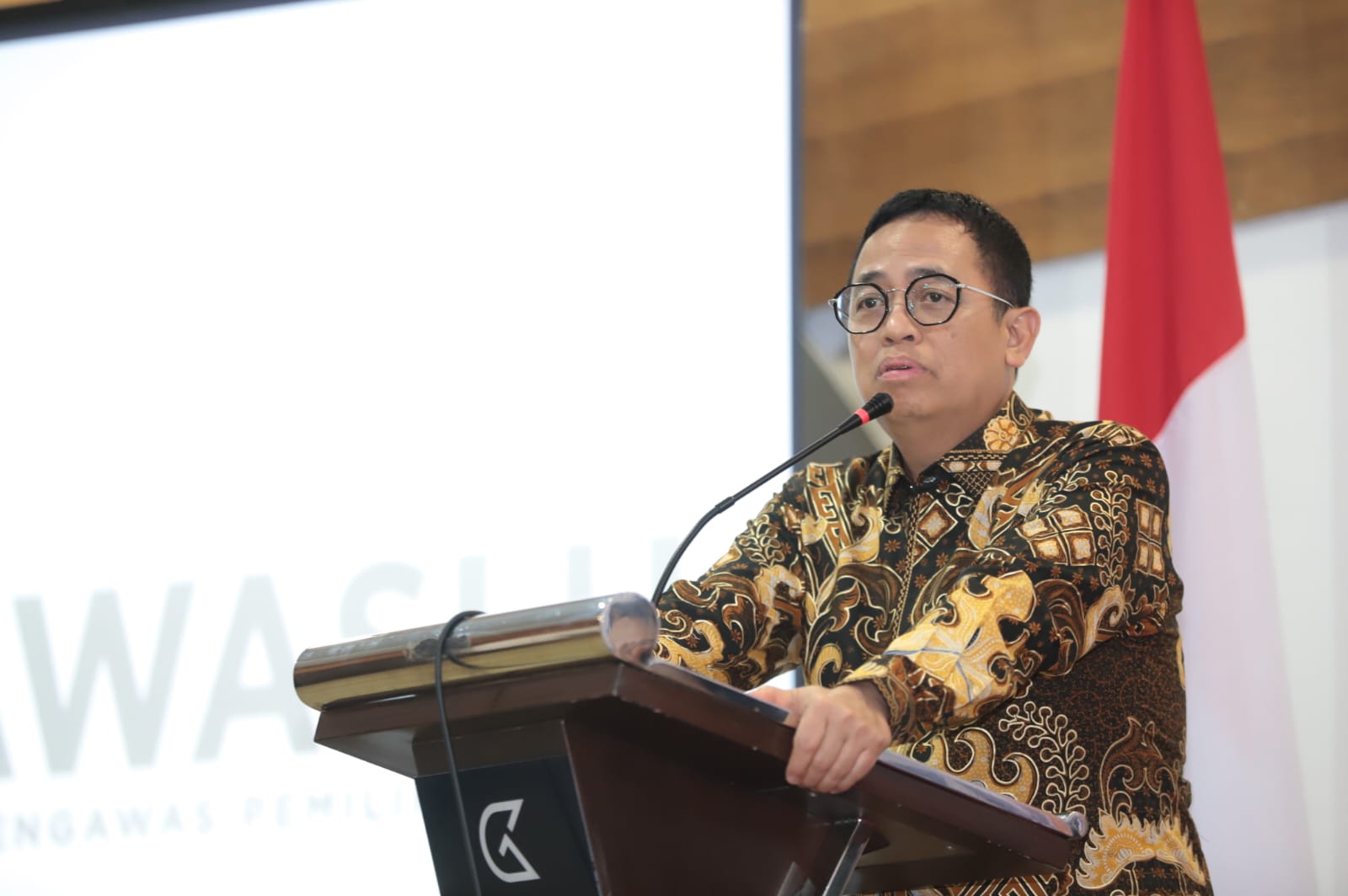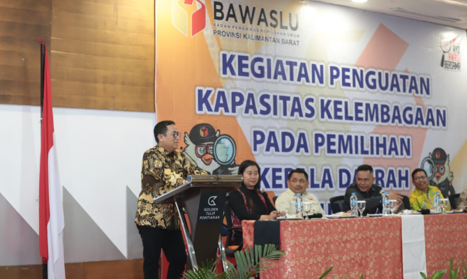 Anggota Bawaslu RI Puadi saat menutup kegiatan Penguatan Kapasitas Kelembagaan pada Pemilihan Kepala Daerah yang digelar Bawaslu Kalimantan Barat, Selasa (6/8/2024).